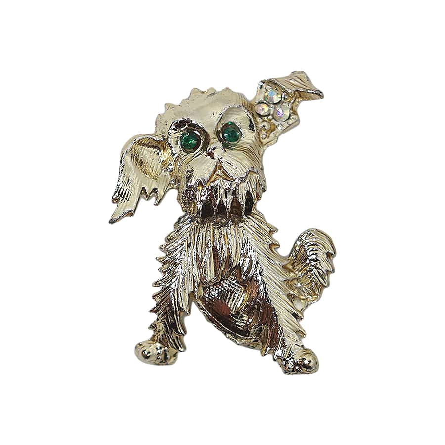 犬 ブローチ ラインストーン装飾