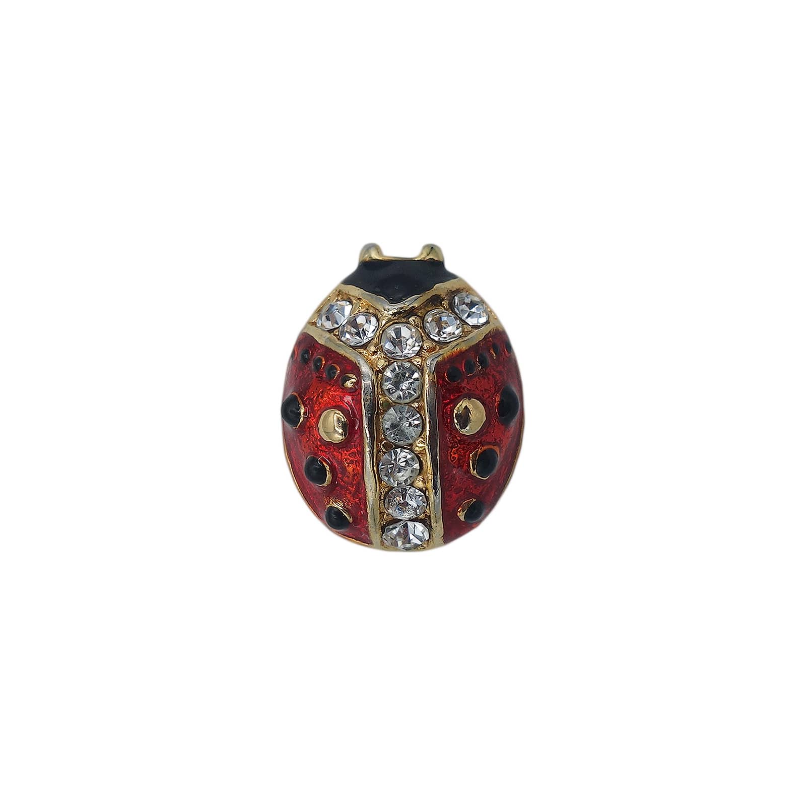 てんとう虫の真っ赤なボディ、キラキラと輝くラインストーンが、華やかな存在感を放ちます。