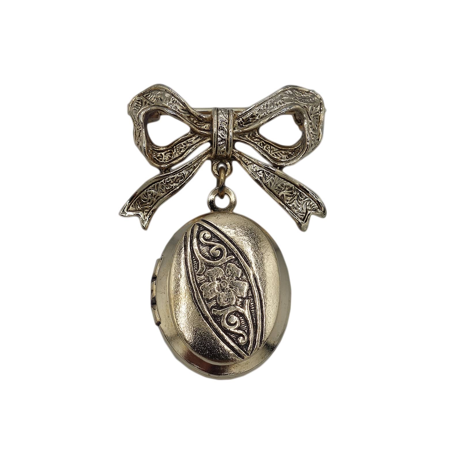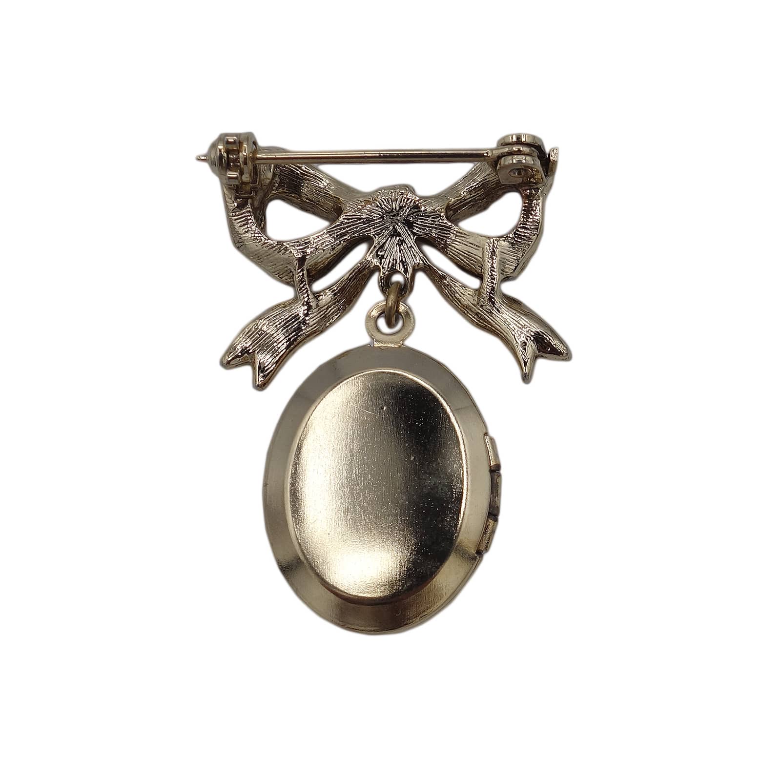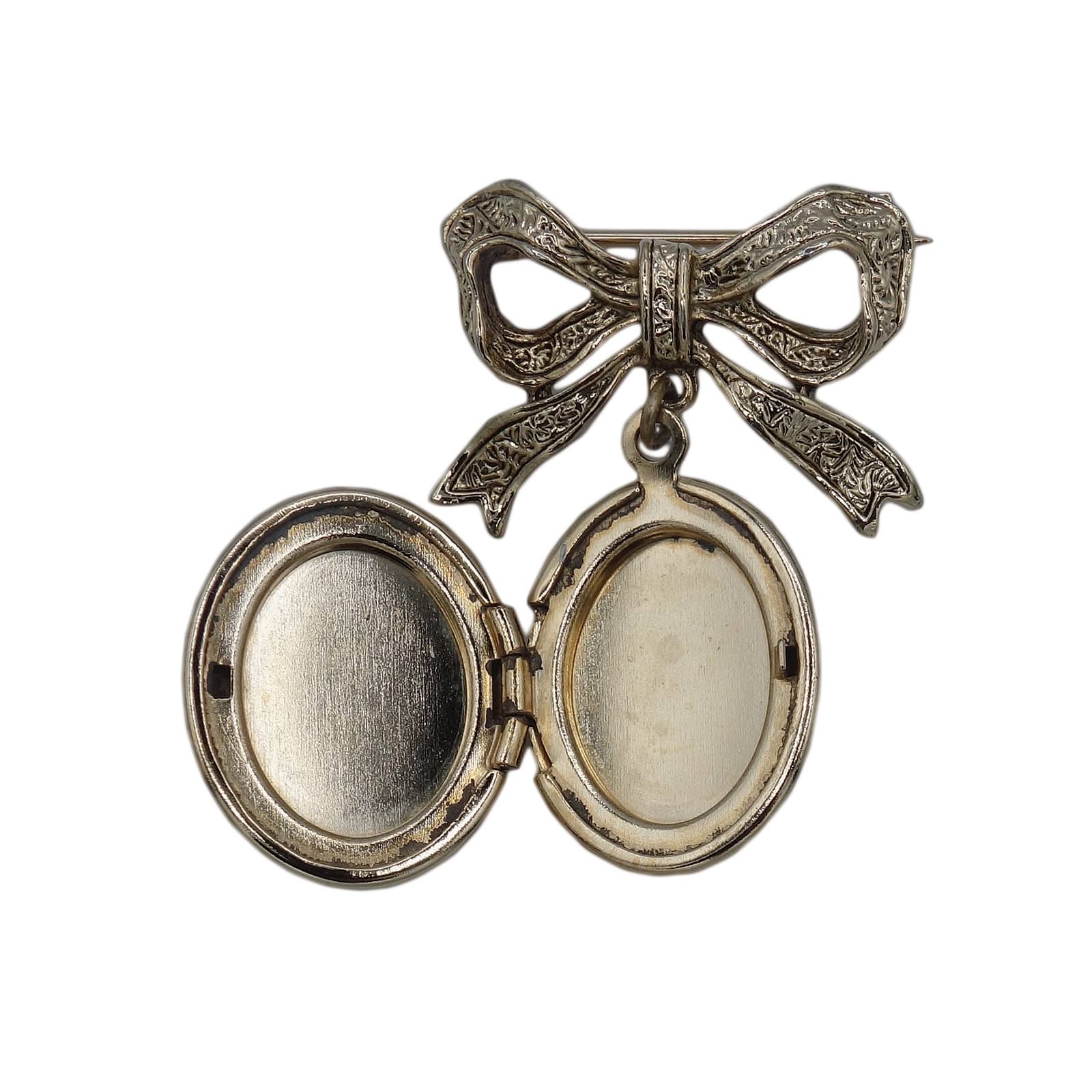 可愛らしいリボンと、ロケットが一体になった、アンティーク調のレトロなロケットブローチ。