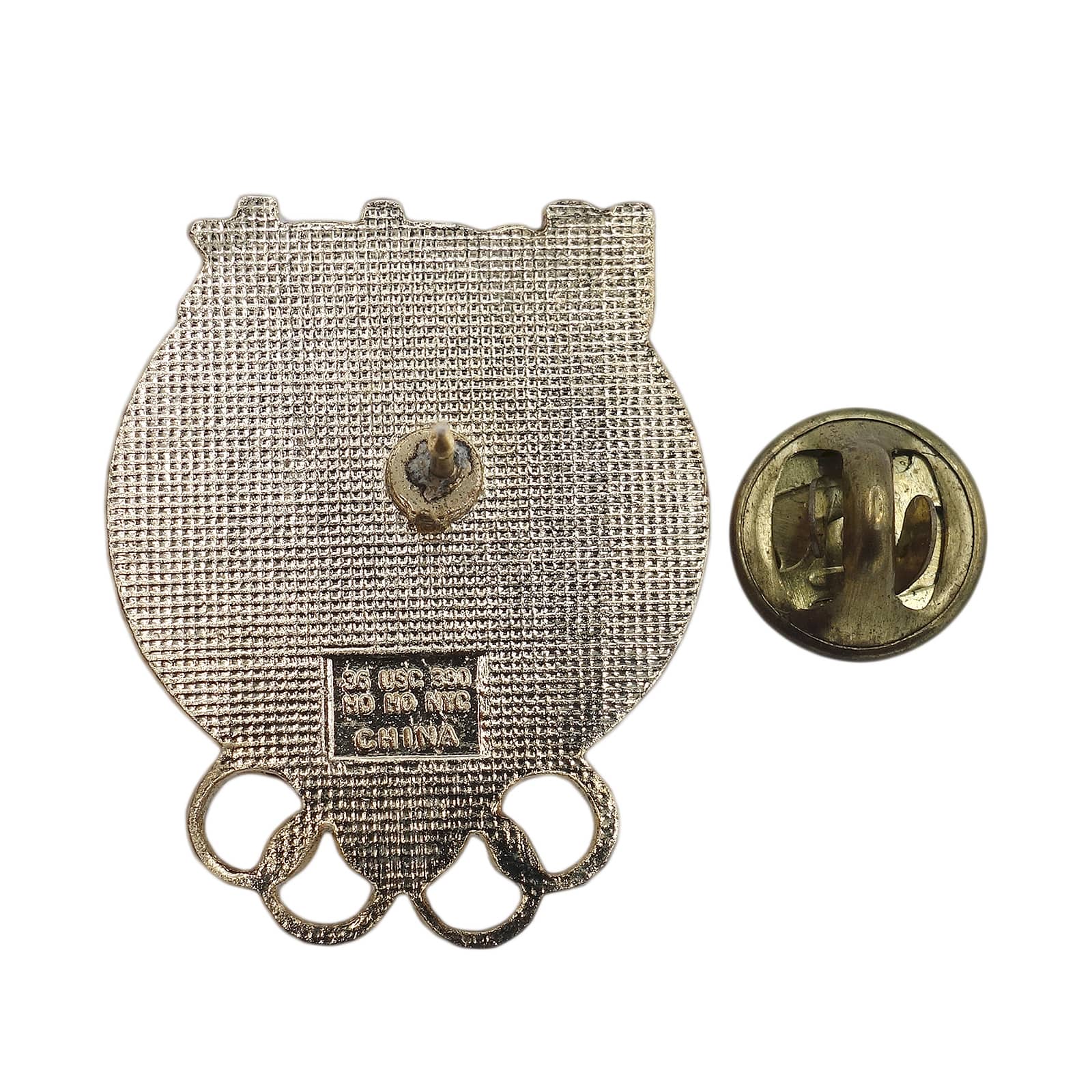 裏面の「36-USC-380」の刻印は、このピンバッジがオリンピック委員会の正式な認可を得て製造された公式なライセンス商品であることを示しています。