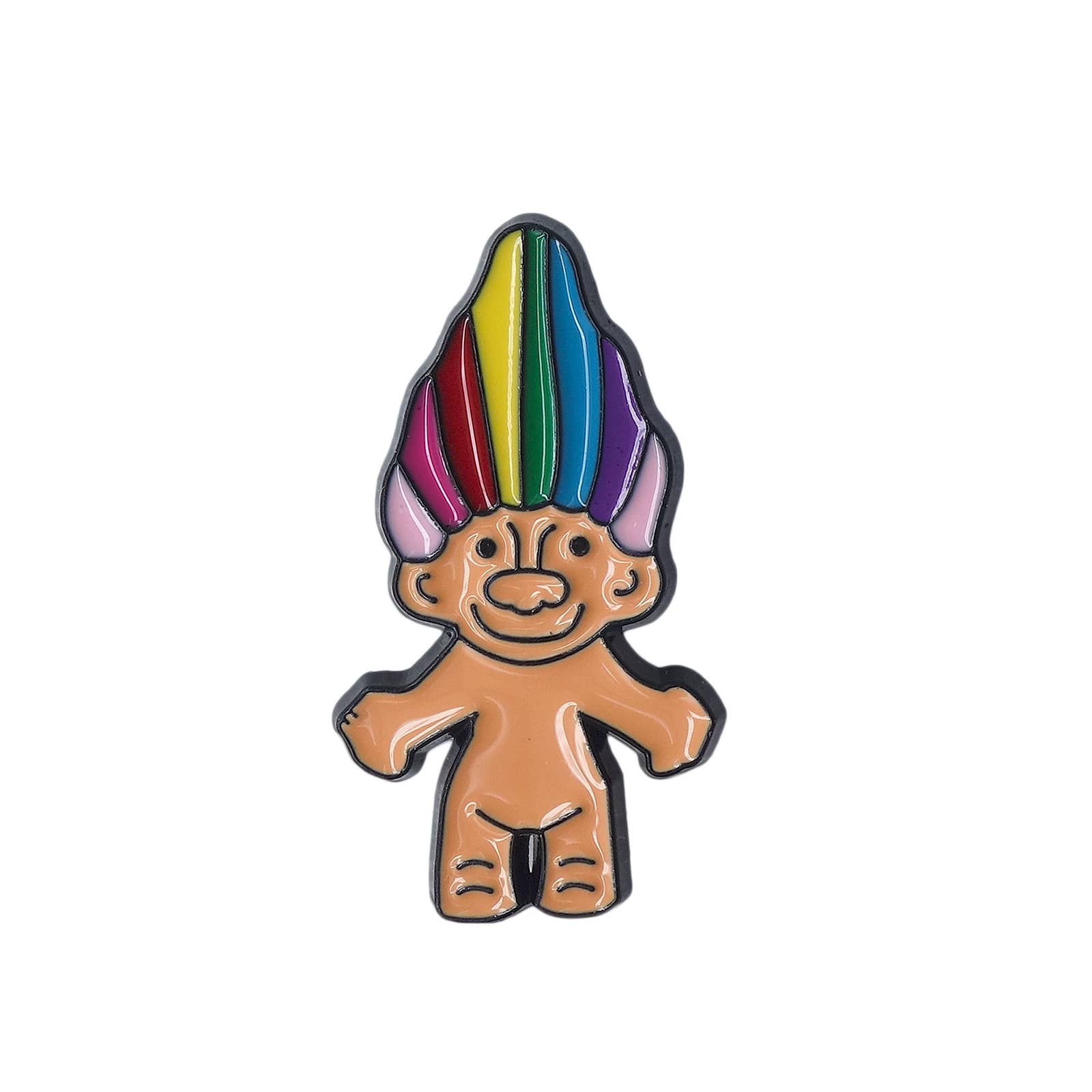 懐かしくて可愛い、虹色の髪をしたトロール人形デザインのピンズ。