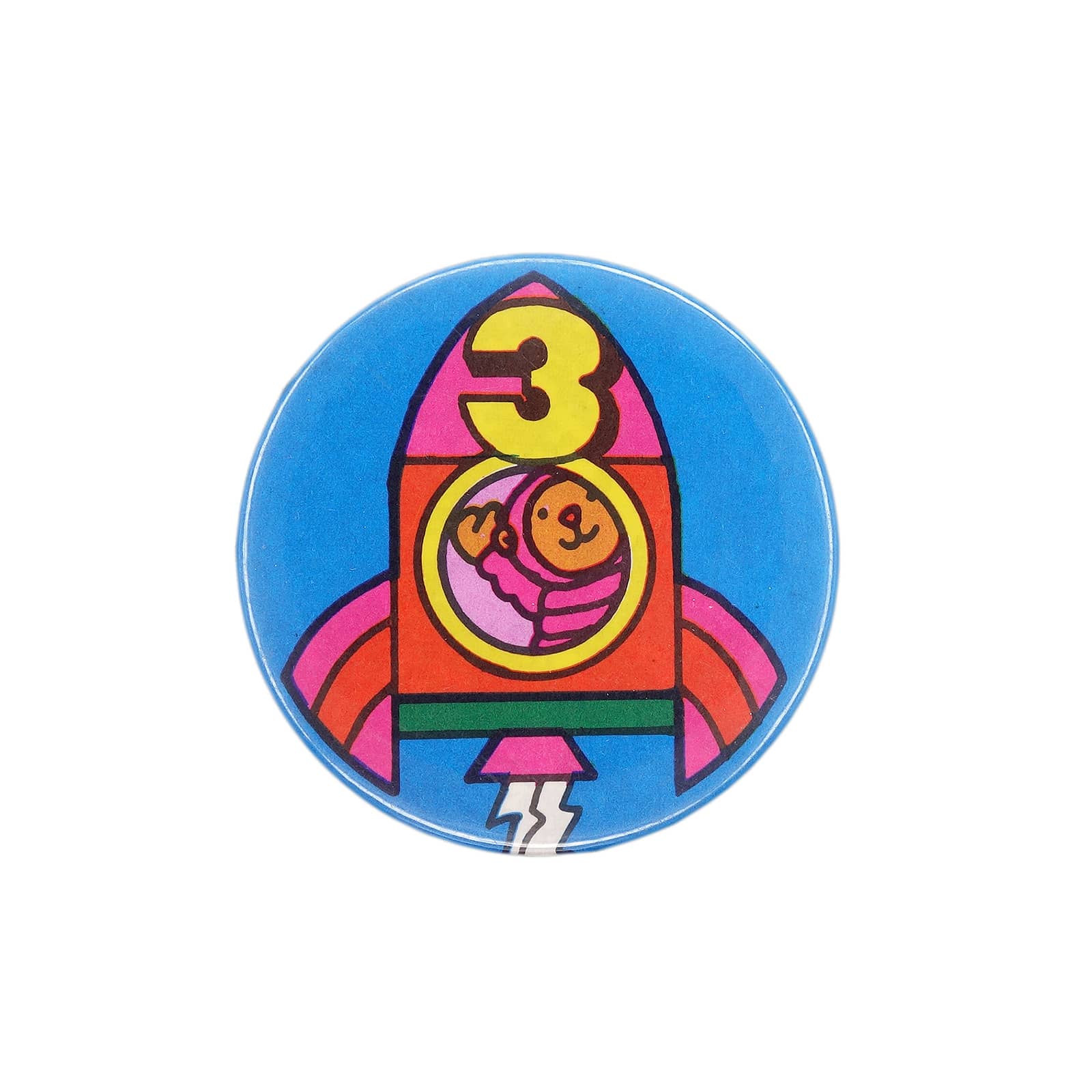 ロケットに乗ったテディベア 3歳 誕生日 缶バッジ バッチ
