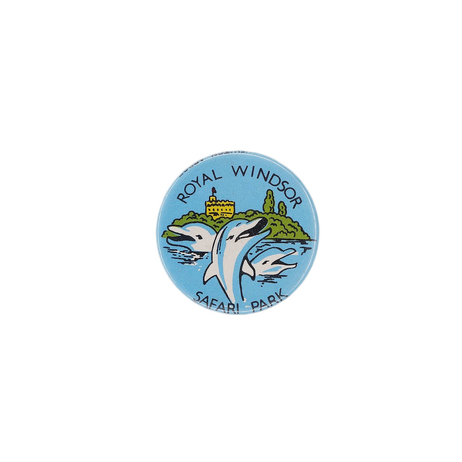 跳ねる3頭のイルカと、ウィンザー城と思われる建物がデザインされています。