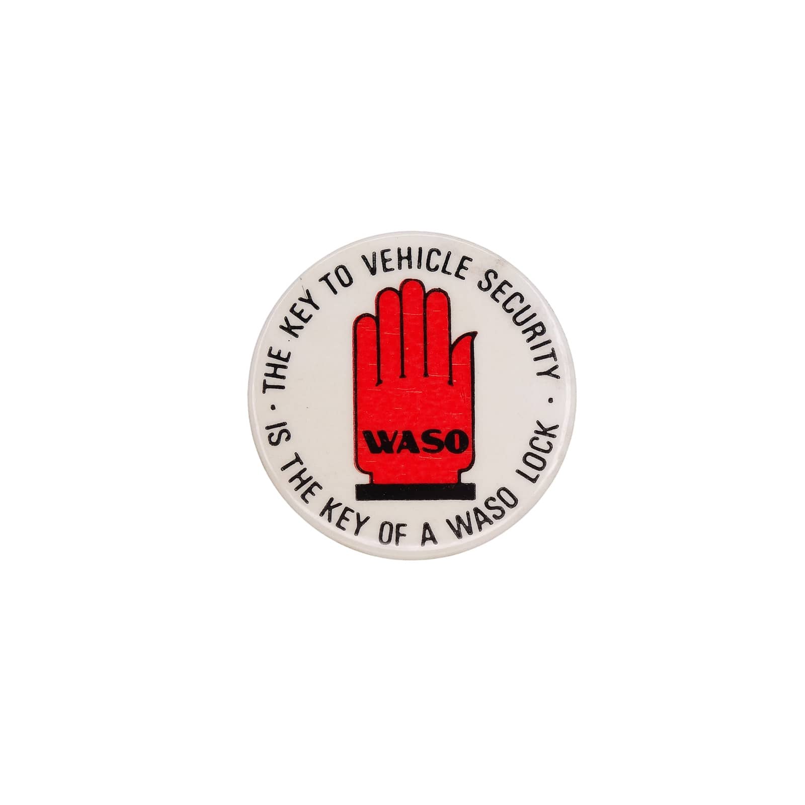 WASO 車両盗難防止システム ロゴ 缶バッジ バッチ 赤い手
